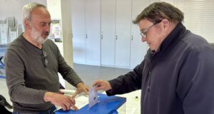 Veïns que voten en la consulta sobre la central reversible a...