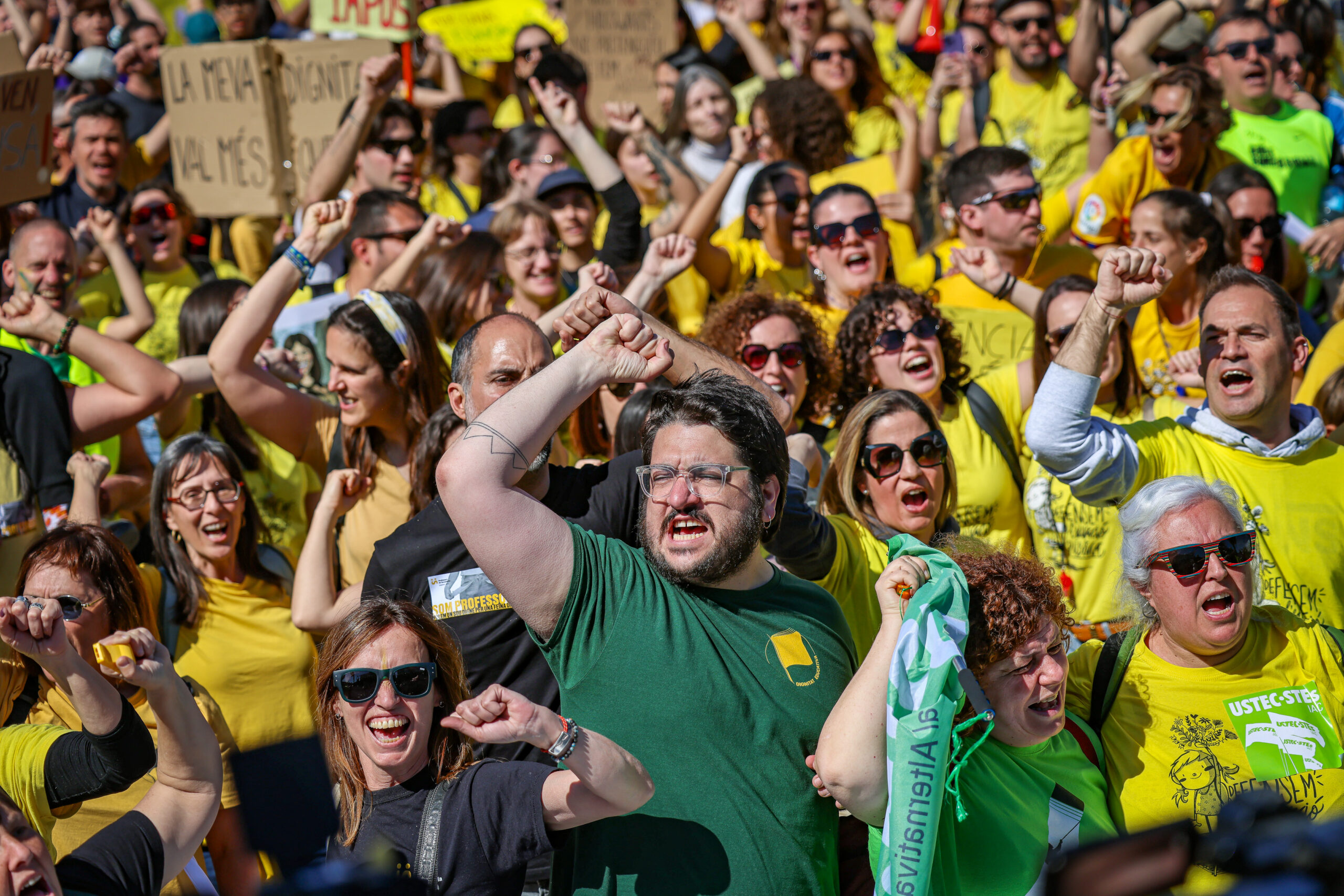 “El que es juga aquí va més enllà d’un acord, es juga quin país volem ser”, ha afirmat. Segura ha conclòs amb un missatge clar al president Salvador Illa i el conseller Dalmau: “No hi ha altre camí que el de la negociació amb el col·lectiu”, ha dit instant-los a reobrir el diàleg. Altres sindicats han anat més enllà i han parlat de “negociació o dimissió” i han advertit que persistiran “fins a la victòria”. “Si no claudiquen farem caure aquest govern”, ha afegit la CGT, mentre que la Intersindical ha titllat CCOO i UGT -els signants de l’acord amb Educació” d'”esquirols”.