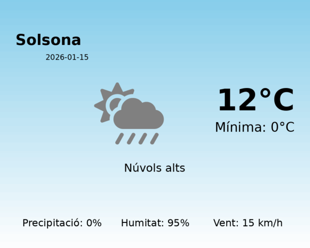 Predicció del Temps a Solsona per al 15 de gener de 2026