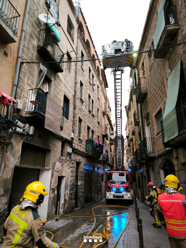 ACN Manresa – L’immoble incendiat al centre de Manresa aquest diumenge s’ha esfondrat parcialment al vespre, segons han informat els Bombers de la Generalitat. L’ensorrament no ha provocat ferits però ha obligat a desallotjar l’edifici i els dels blocs adjacents. Durant la tarda els Bombers, que hi mantenen vuit dotacions, ja havien advertit que hi havia risc d’esfondrament i han activat el Grup d’Estructures Col·lapsades (GREC) per avaluar-ne el risc estructural. També s’hi ha apropat l’arquitecte municipal.