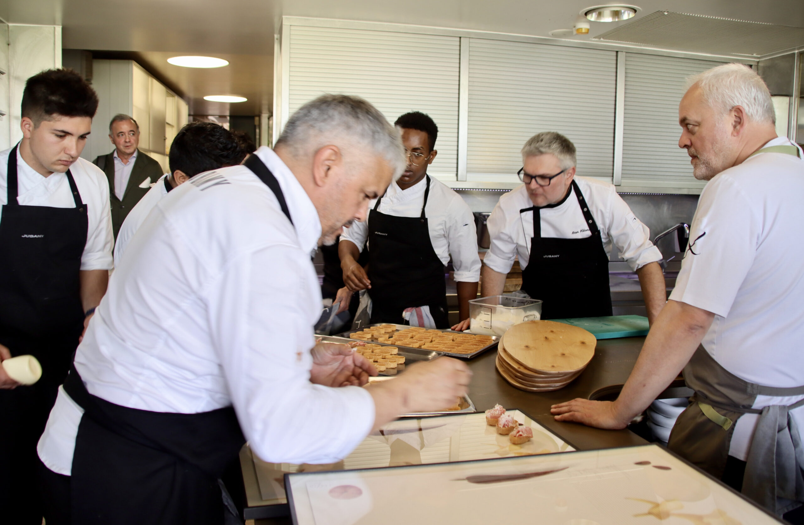 “Cuina honesta, amb arrel i identitat”. Així definia la filla de Santi Santamaria, Regina Santamaria, com era la cuina del seu pare davant un centenar de persones que aquest dilluns s’han reunit a Can Jubany per retre un homenatge al cuiner de Can Fabes. A banda dels cuiners amb estrella Michelin que han elaborat un plat pels comensals, a Calldetenes també hi havia moltes cares conegudes que han volgut recordar el xef de Sant Celoni. Entre ells, xefs multiestrellats i reconeguts mundialment com Ferran Adrià o Carme Ruscalleda, però també altres com Carles Gaig, Pere Monje (Via Veneto) o Romain Fornell (Caelis), entre molts d’altres.